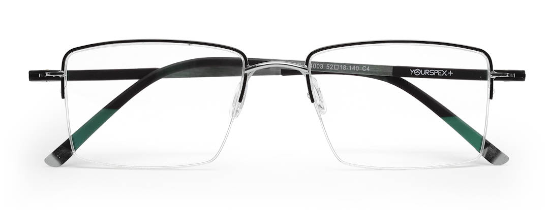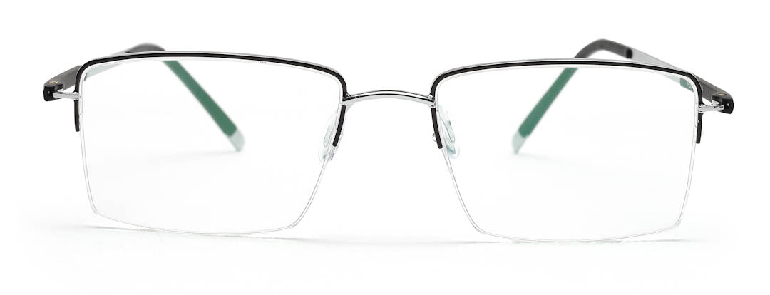 Whether you need a progressive vision correction or single vision correction, this Black Silver Rectangle Half Rim Frame for Men is the best fit for you. These titanium frames are extremely durable, lightweight and easy to carry all day long. These come in a very classic color to ensure you feel comfortable whenever you carry them.