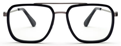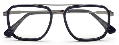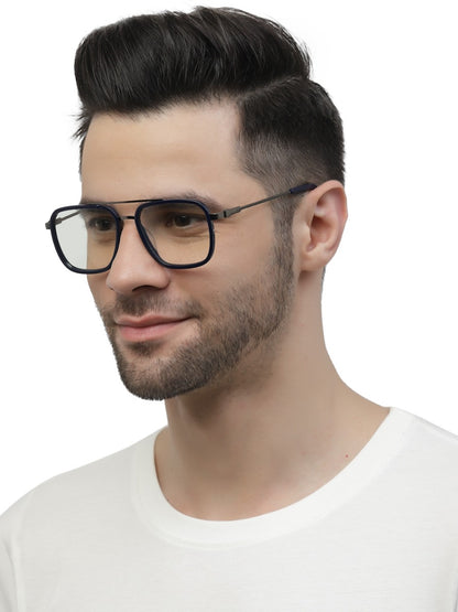 Dark Blue Silver Rectangle Eyeglasses for Men