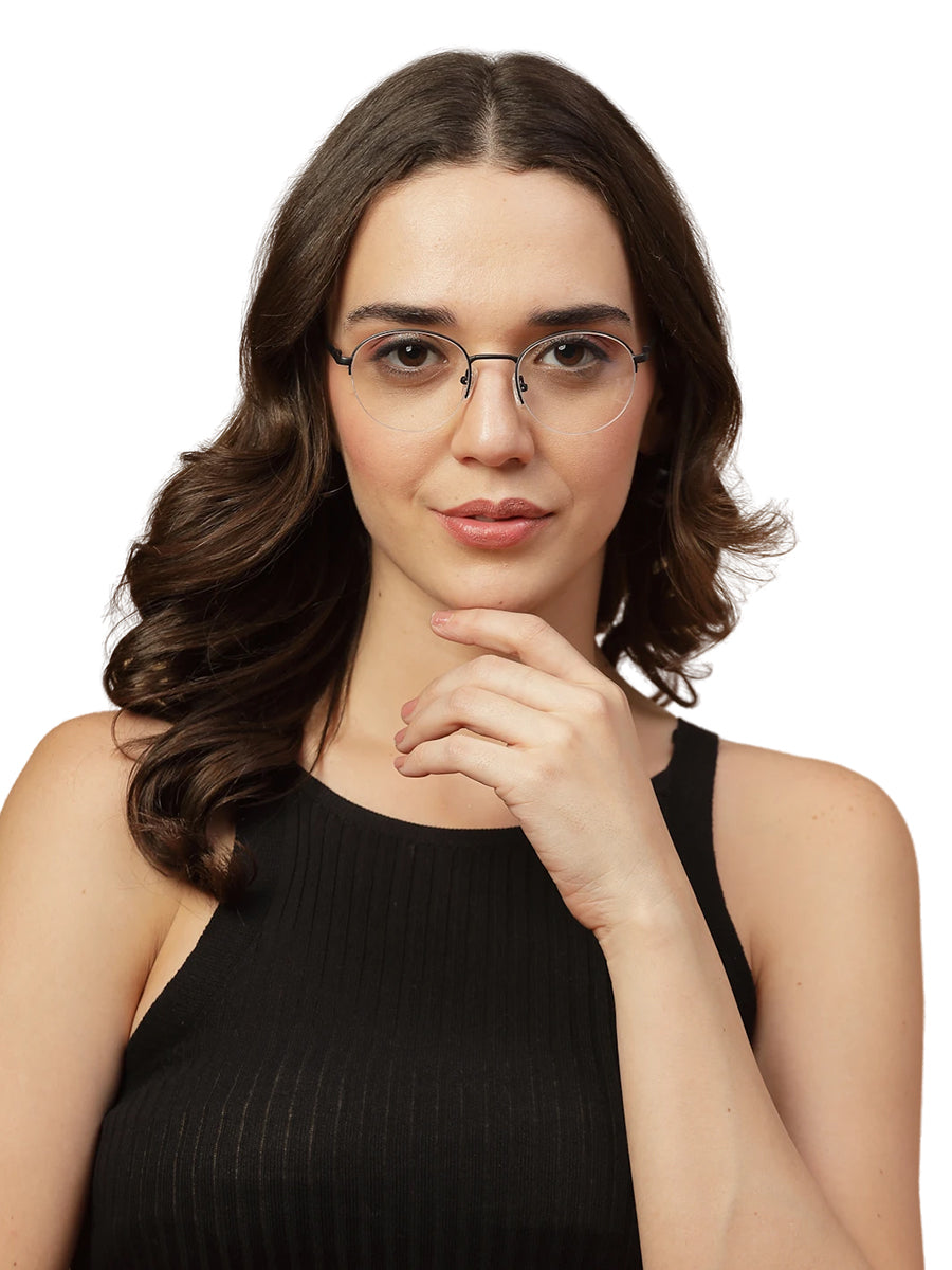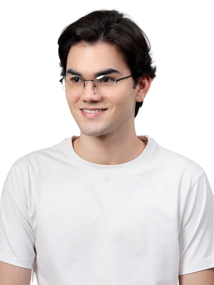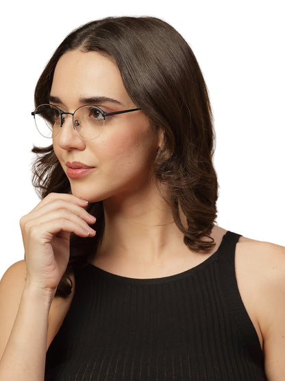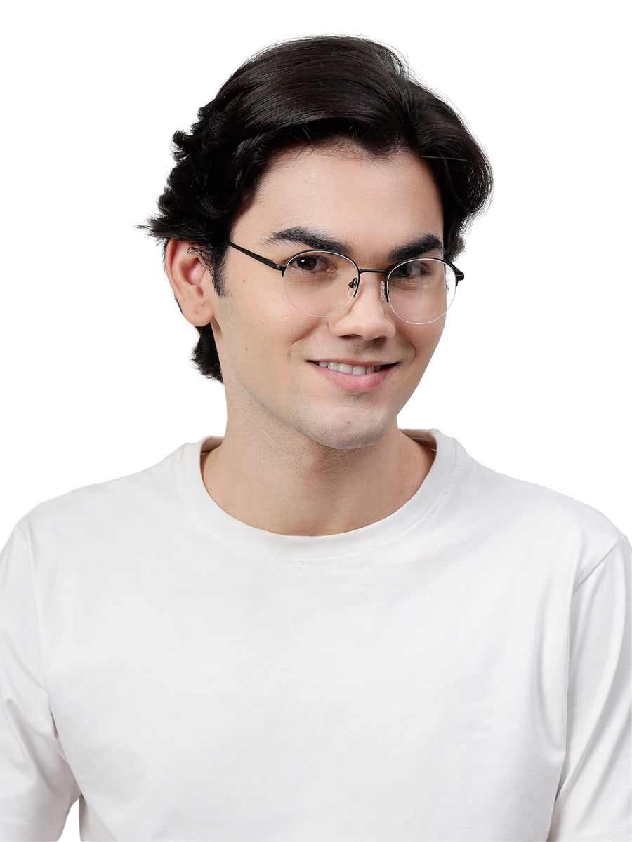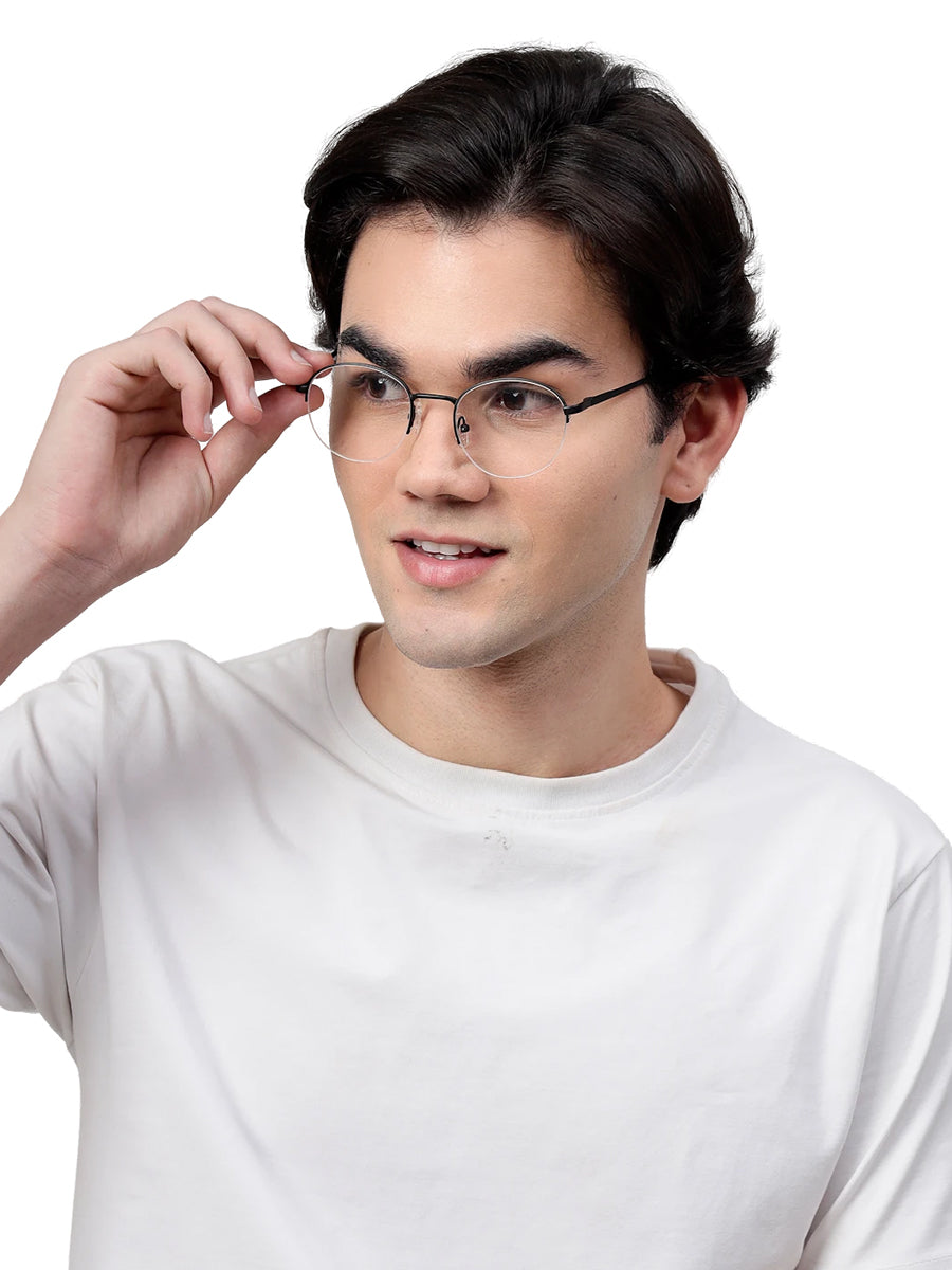 Understated and comfortable, black round half rim spectacles crafted for effortless wear — from the Sleek Spectacles series.
