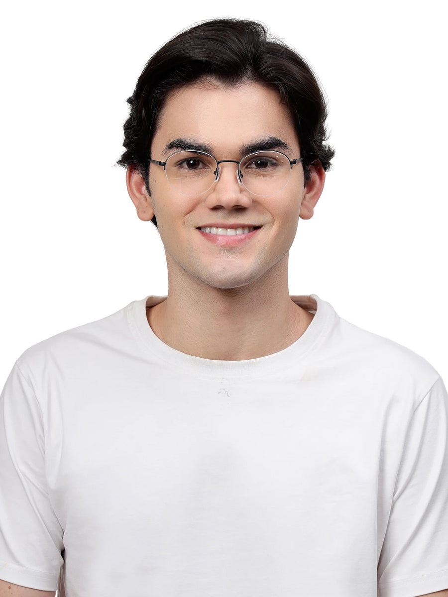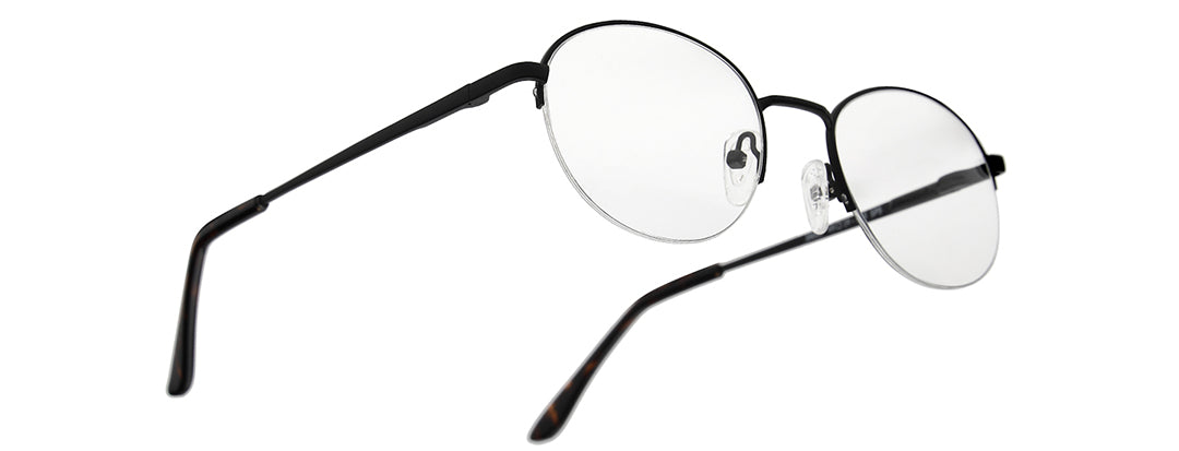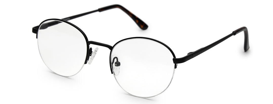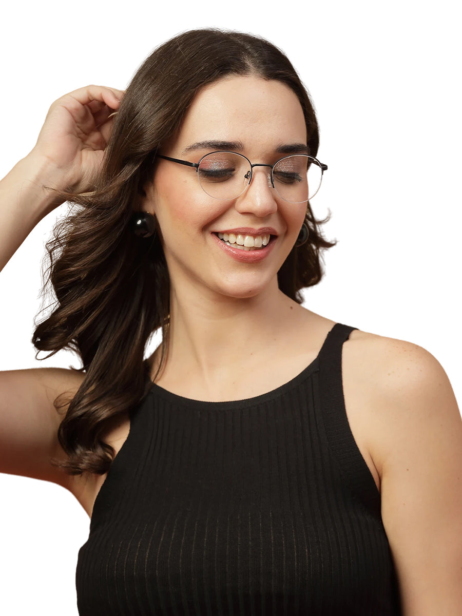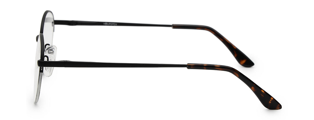 Understated and comfortable, black round half rim spectacles crafted for effortless wear — from the Sleek Spectacles series.