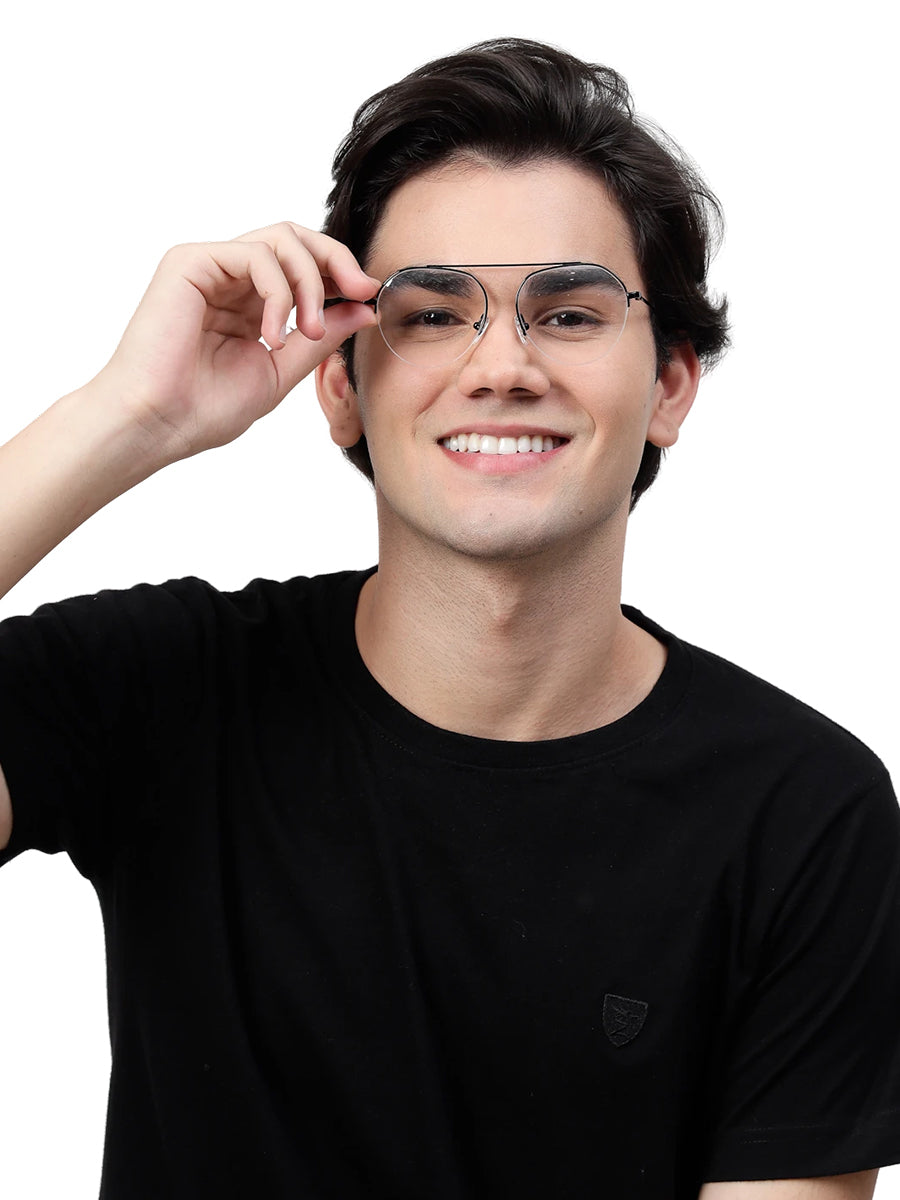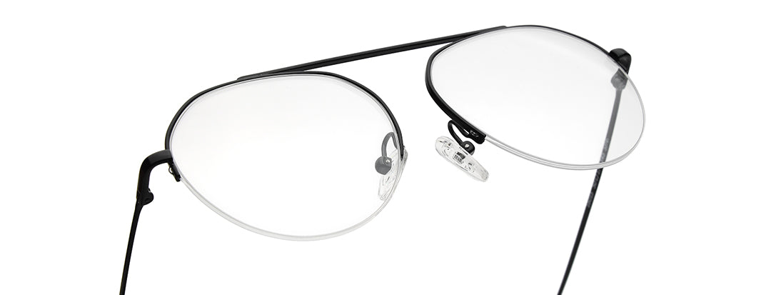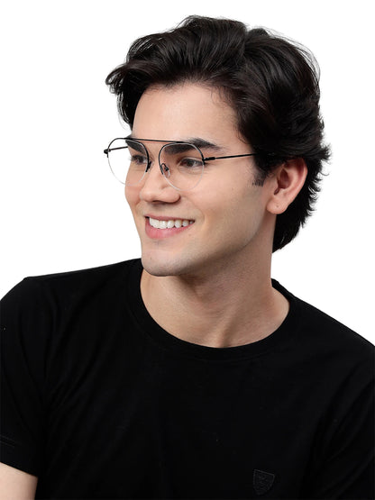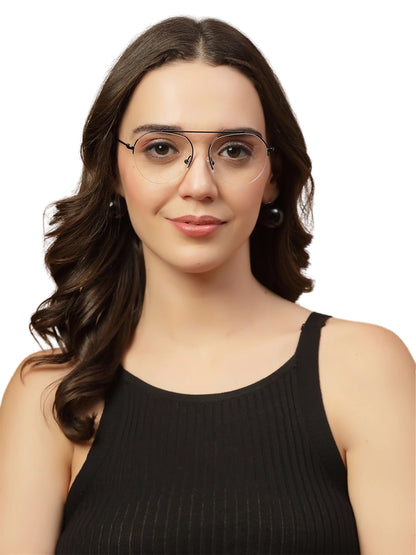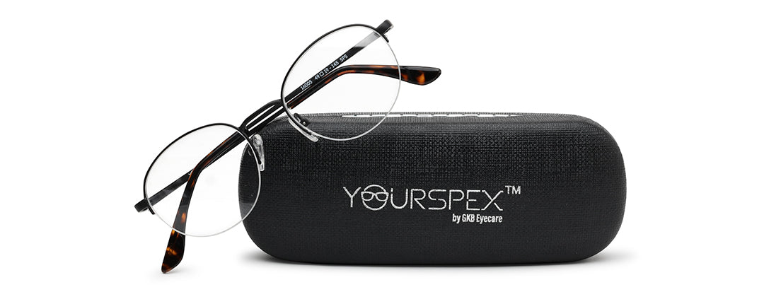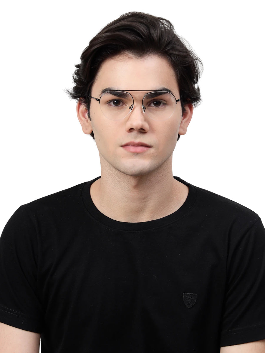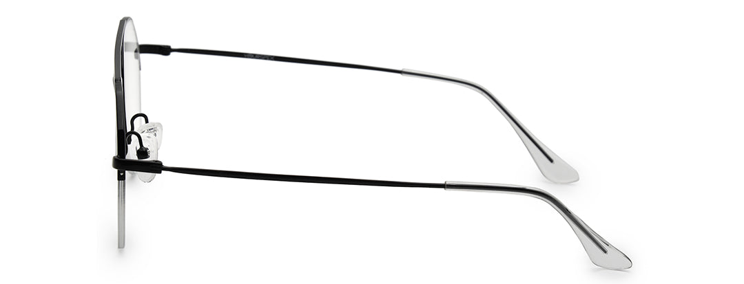 Minimal yet bold, these black round half rim glasses define the essence of Sleek Spectacles.