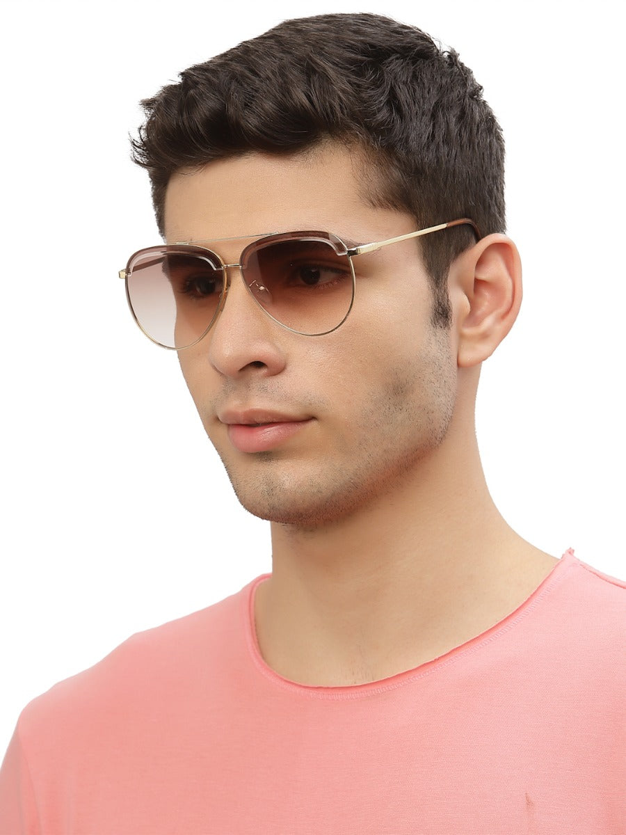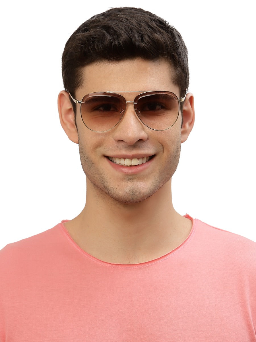 Sport our unique brown aviator style sunglasses with brown glossy finish this season! With our trendy eyewear, there is no looking back! Look cool and stylish with our hip pair of aviator style sunglasses in brown shade PC sun lens. We offer you a sturdy frame that is super flexible and extremely affordable!