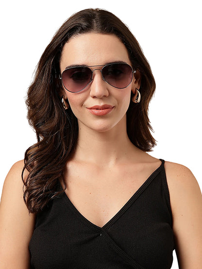 Add a splash of personality with the ChromePurple Aviators. With a shiny chrome frame and gradient purple lenses, this unisex pair offers standout style in a medium full-rim design.