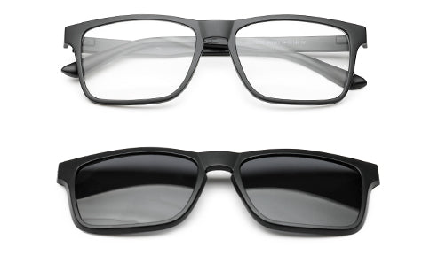 The Classic Black UltraLight Clip-on Spectacles bring together comfort and convenience with a crisp square frame that suits every face. The ultra-light build makes long hours easy on your eyes, while the clip-on feature turns them into sunglasses in a second — ideal for work, commute, and travel.