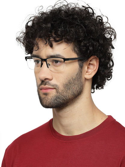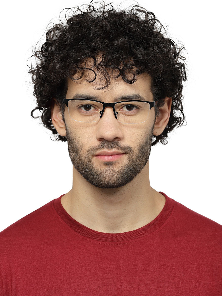 Half Rim Rectangle Glossy Black Colour Frame for Men