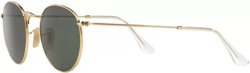 RAY-BAN ARISTA Sunglasses | 0RB3447I | Round | Golden Frame | Green Lens Lens Width :: 50.1 mm, Bridge Width :: 21 mm, Temple Length :: 145 mm It's time for you to set the fashion bar higher with the Arista Sunglass range from Ray-Ban in a round shape. This sunglass is extremely trendy and appropriate to enhance your everyday attire. The lenses are made with high-quality polycarbonate material which will protect your eyes from harmful UV Rays.