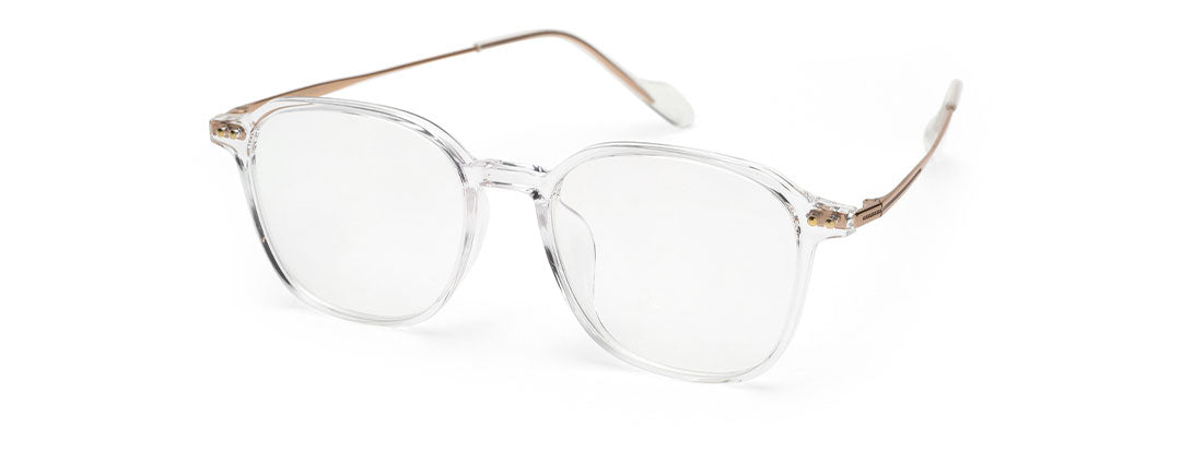 Square Shaped Stylish Transparent Glasses with Golden Temples