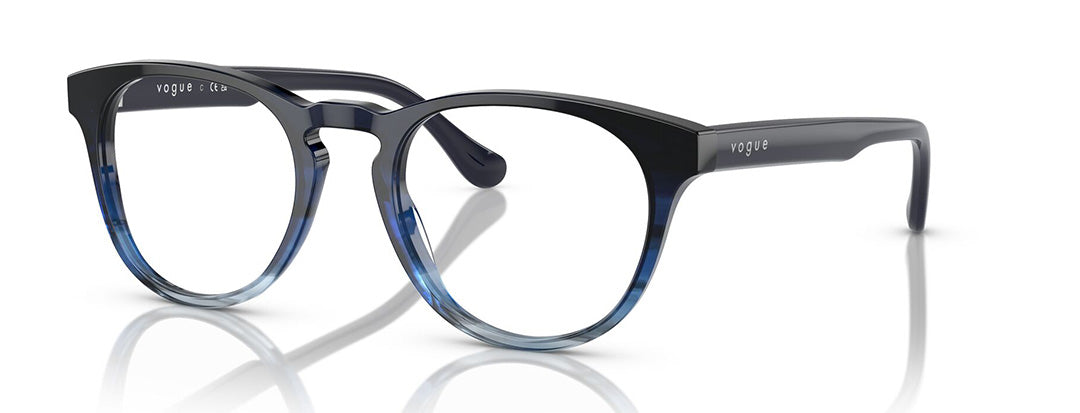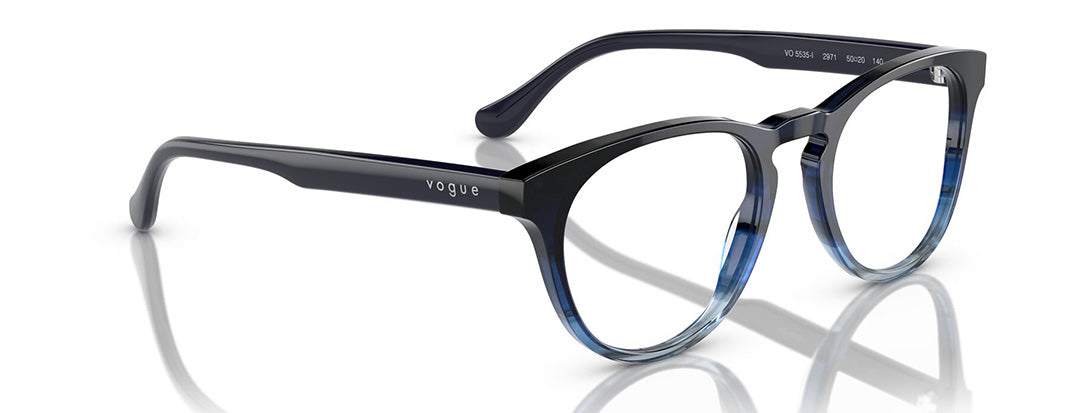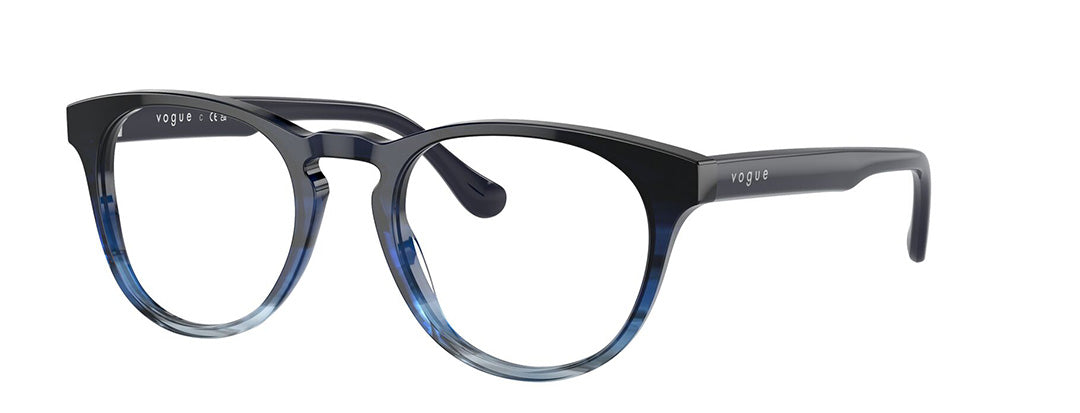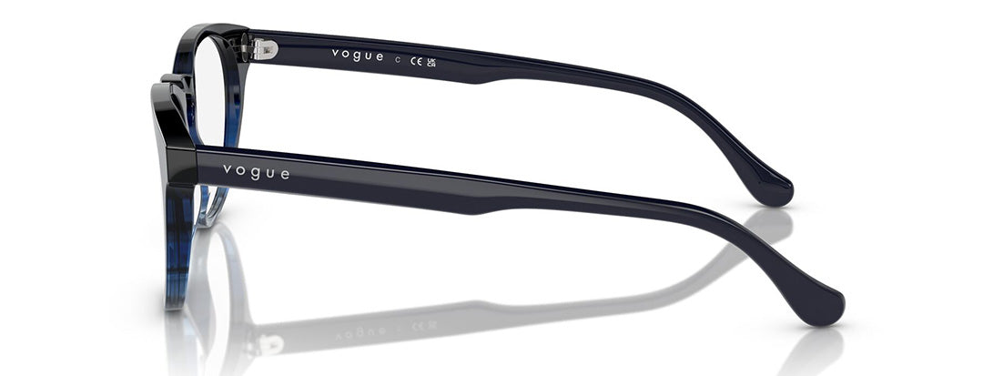 These Vogue Eyewear optical frames feature a sharp phantos shape in sophisticated blue acetate. Designed for a sleek, modern look, they offer a stylish and refined choice for everyday eyewear.