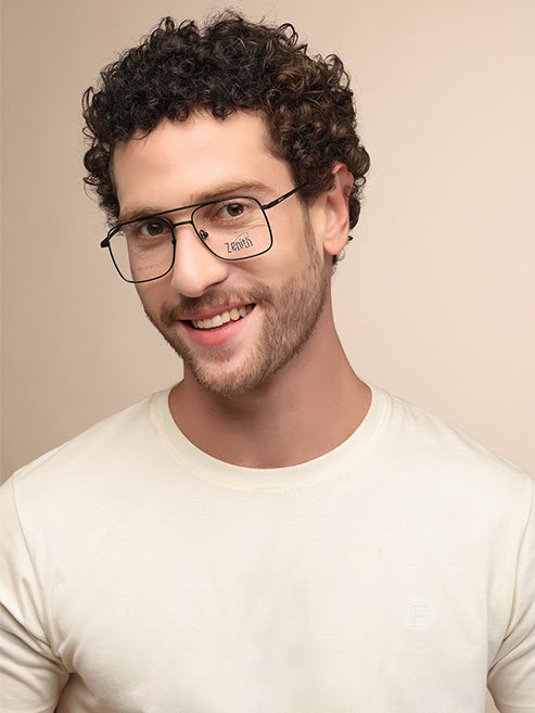 The Zenith Titanium Black Large Square Frames redefine sophistication. With a premium black finish and ultra-light Beta-titanium build, these spectacles combine strength, comfort, and style. Ideal for professionals who value minimalism and durability. Features: Lightweight beta-titanium material; Corrosion-resistant & hypoallergenic; Elegant gold finish; Sturdy square shape; Comfortable daily wear